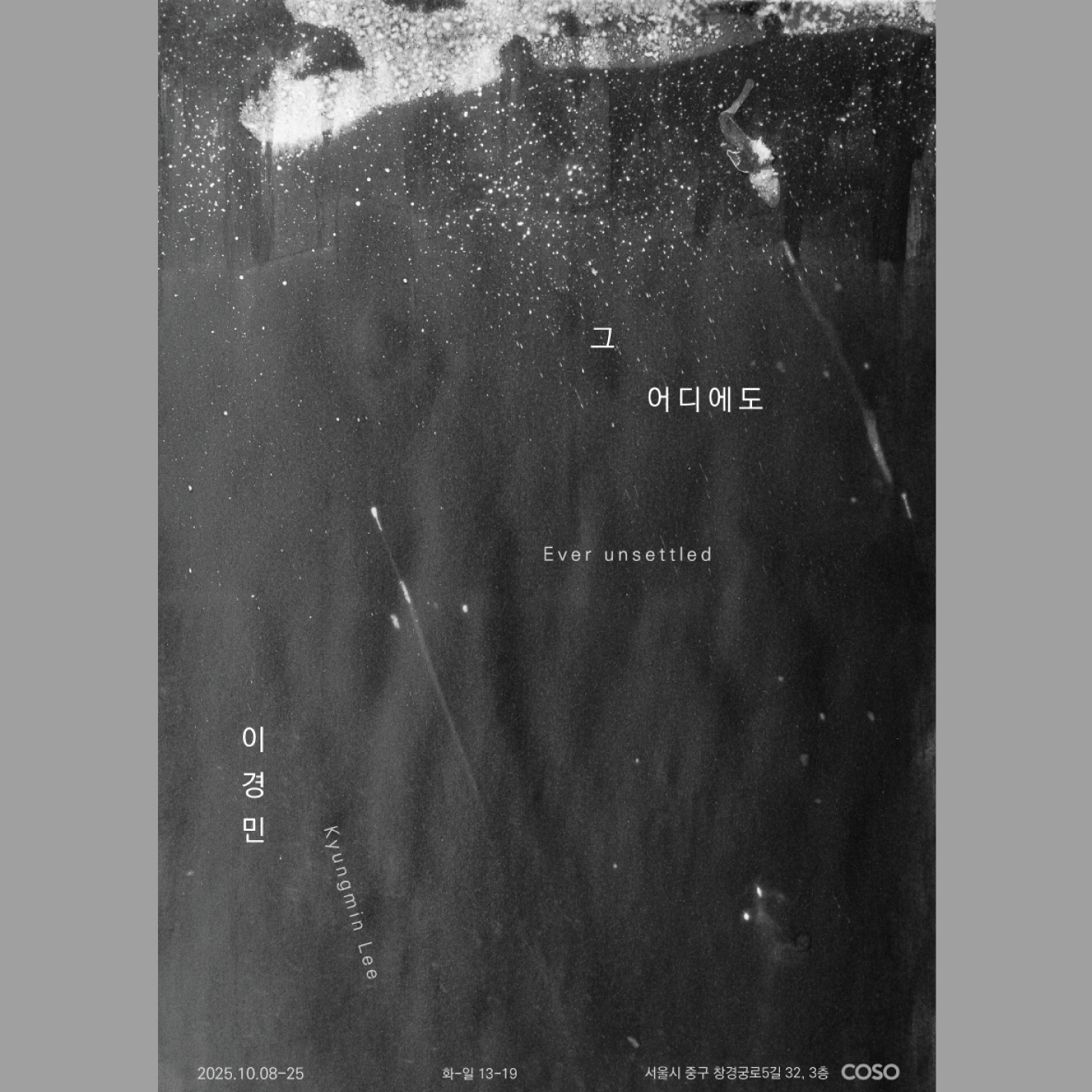 수상 및 선정 2025 영민 해외 레지던시, 한화문화재단 2023 창작지원작가전, 김종영미술관 2021 예술기반지원, 서울문화재단 2020 창작준비지원, 서울문화재단 CV instagram homepage | Credit | 작가 이경민 서문 신명철 촬영 신예영 포스터디자인 신예영 설치 이경민 주최/주관 코소 후원 코소